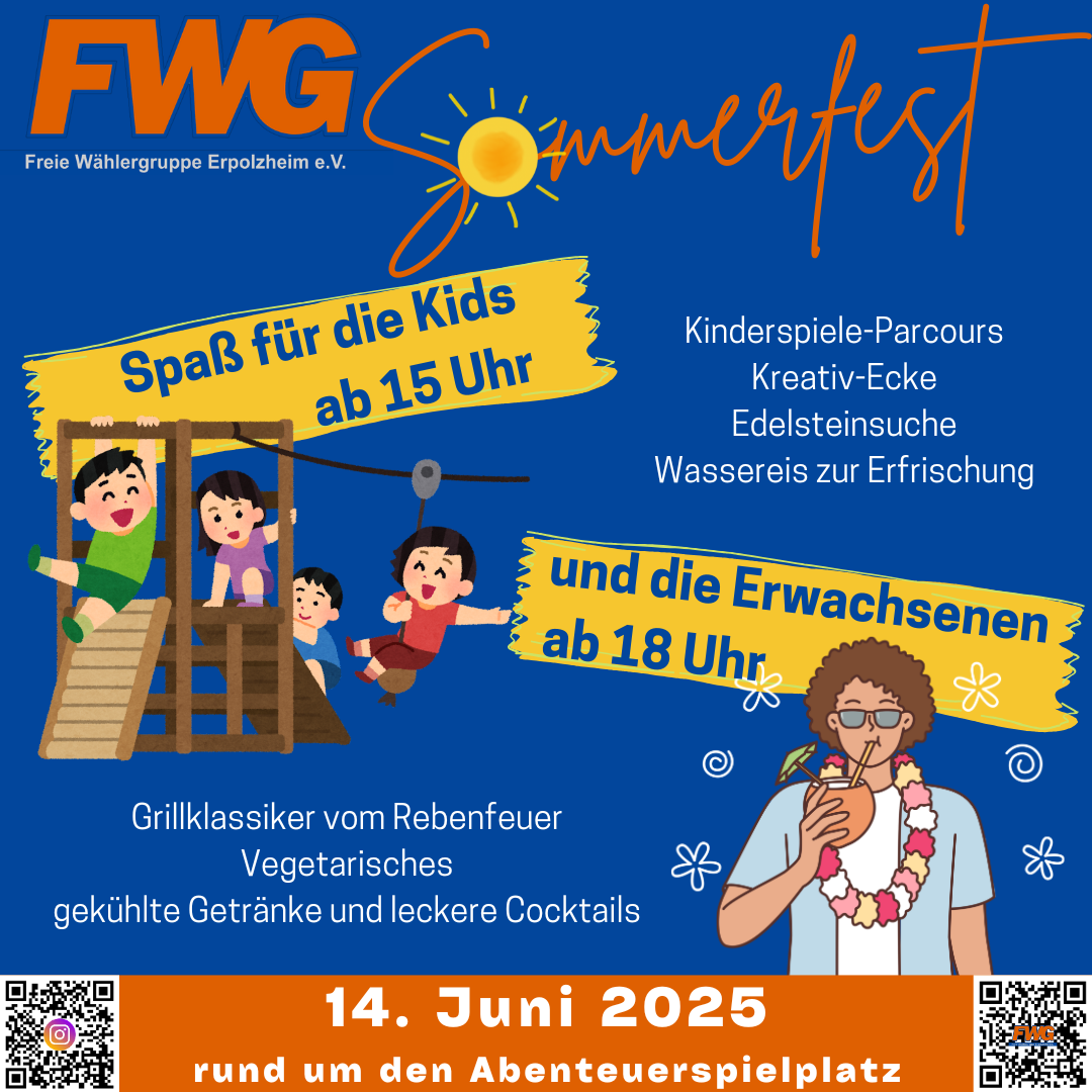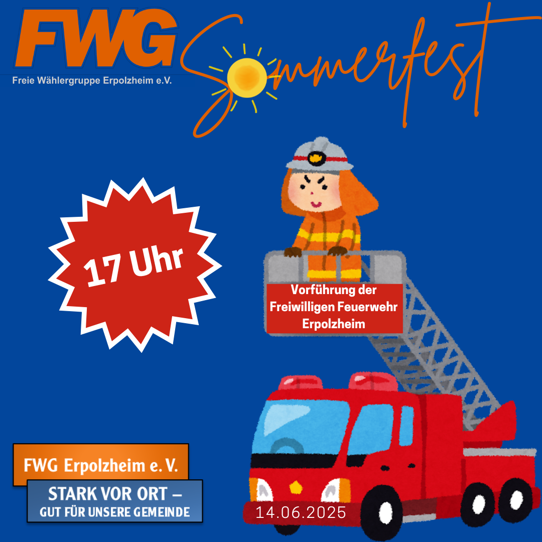 Termine & Veranstaltungen « Alle Veranstaltungen Diese Veranstaltung hat bereits stattgefunden. FWG Sommerfest 14. Juni um 15:00 bis 23:30 « FWG Stammtisch WUMA-Stammtisch » Details Datum: 14. Juni Zeit: 15:00 bis 23:30 Veranstaltungsort Abenteuerspielplatz am Sportplatz Erpolzheim, Jahresübersicht der Veranstaltungen 2020